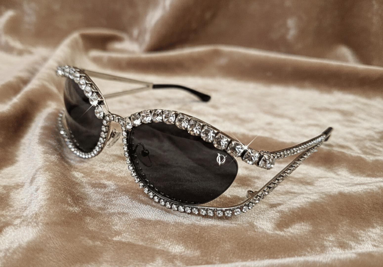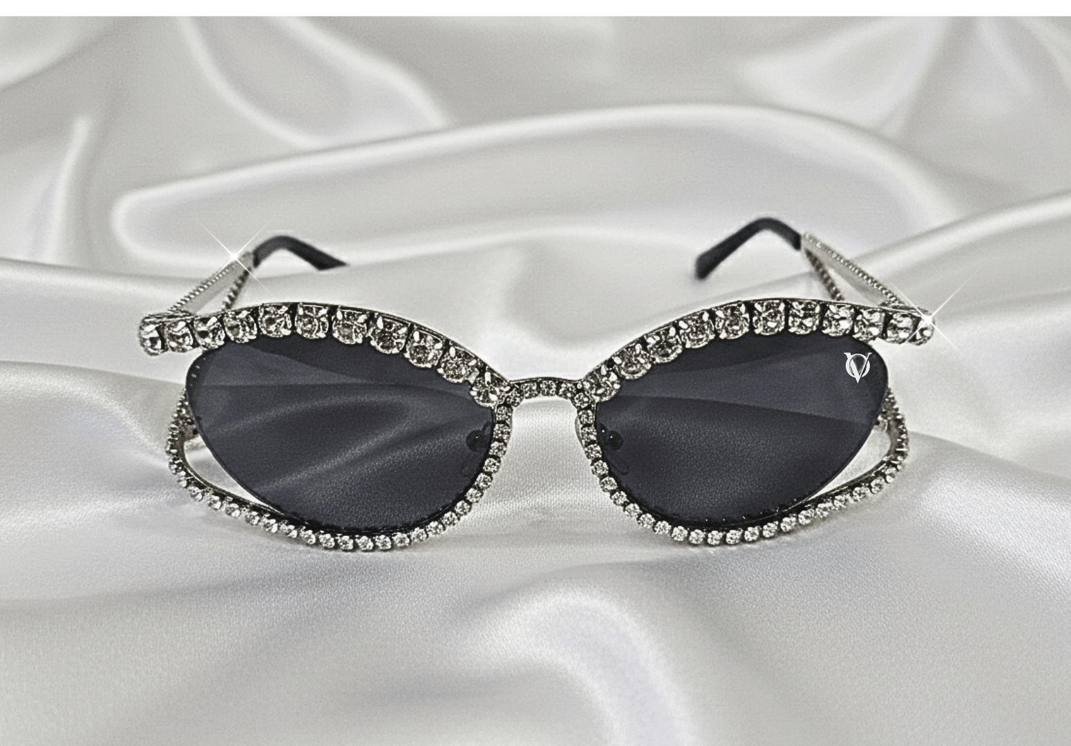Designed for bold elegance, these OneVizion crystal cat-eye sunglasses blend glamour with modern luxury. The sharply sculpted cat-eye silhouette is framed with meticulously placed crystal-style embellishments, creating a radiant, jewellery-inspired finish.
