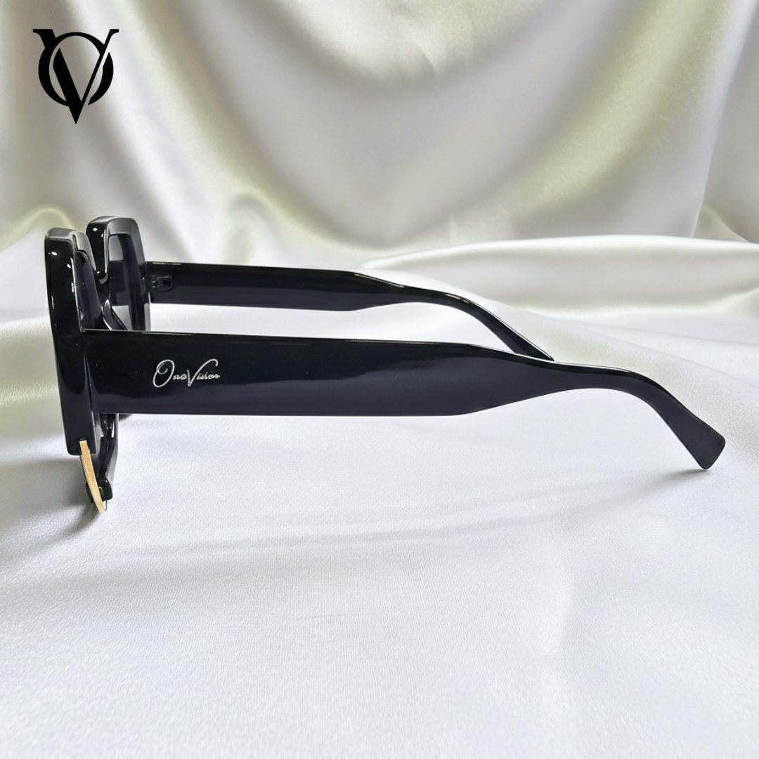 Premium Branding: Accented with the signature OneVizion script on the temple and the "OV" monogram etched subtly on the lens and upper corner.