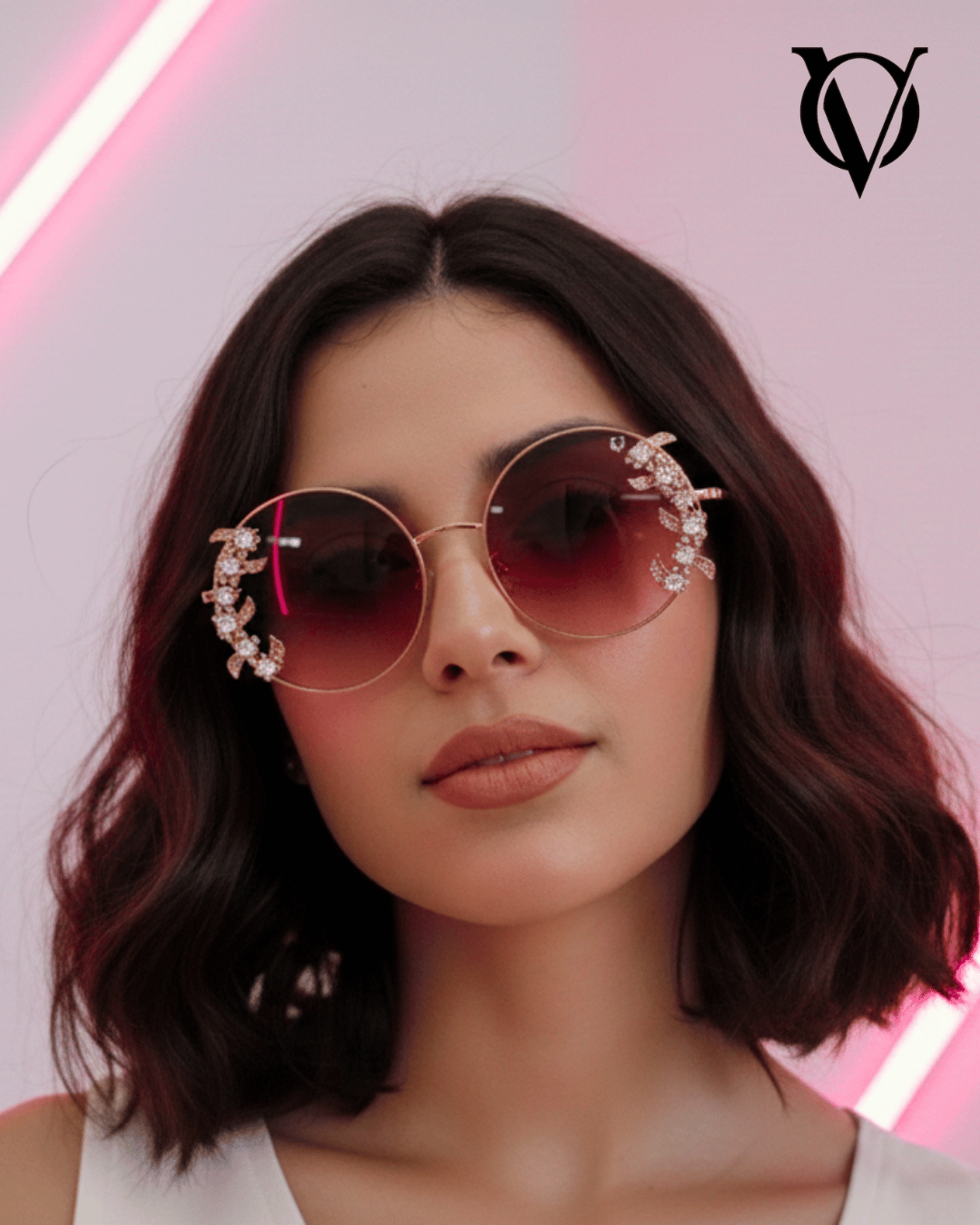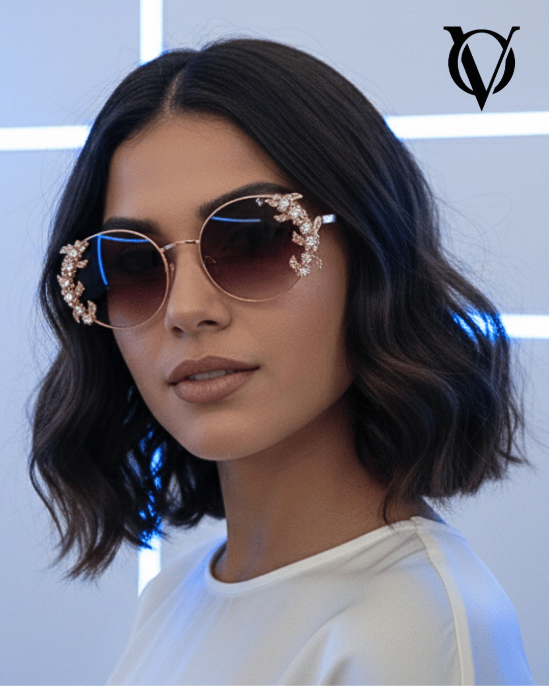 A bold fusion of glamour and edge, these OneVizion crystal circle sunglasses are designed to stand apart. The sharply angular circle frame is highlighted with precision-set crystal-style embellishments along the rims, creating a striking jewellery-like finish.