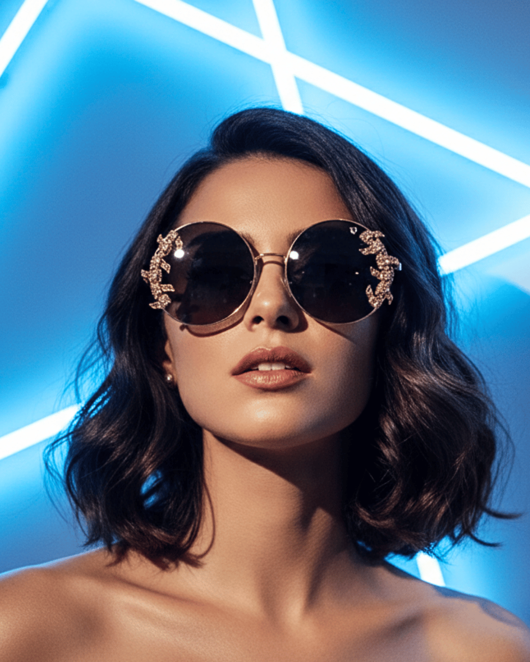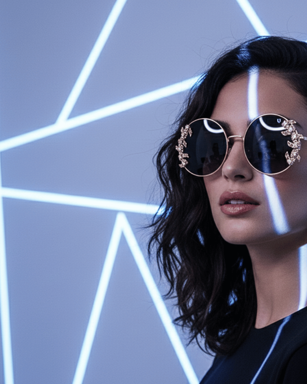 A bold fusion of glamour and edge, these OneVizion crystal edge circle sunglasses are designed to stand apart. The sharply circular frame is highlighted with precision-set crystal-style embellishments along the rims, creating a striking jewellery-like finish.