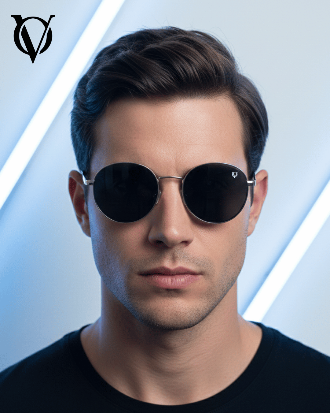 The slim metal temples enhance the lightweight feel while adding durability and elegance. Dark tinted lenses provide a bold contrast against the metallic frame, delivering both style and reliable sun protection. Designed for comfort and balance, these sunglasses sit naturally on the face for all-day wear.