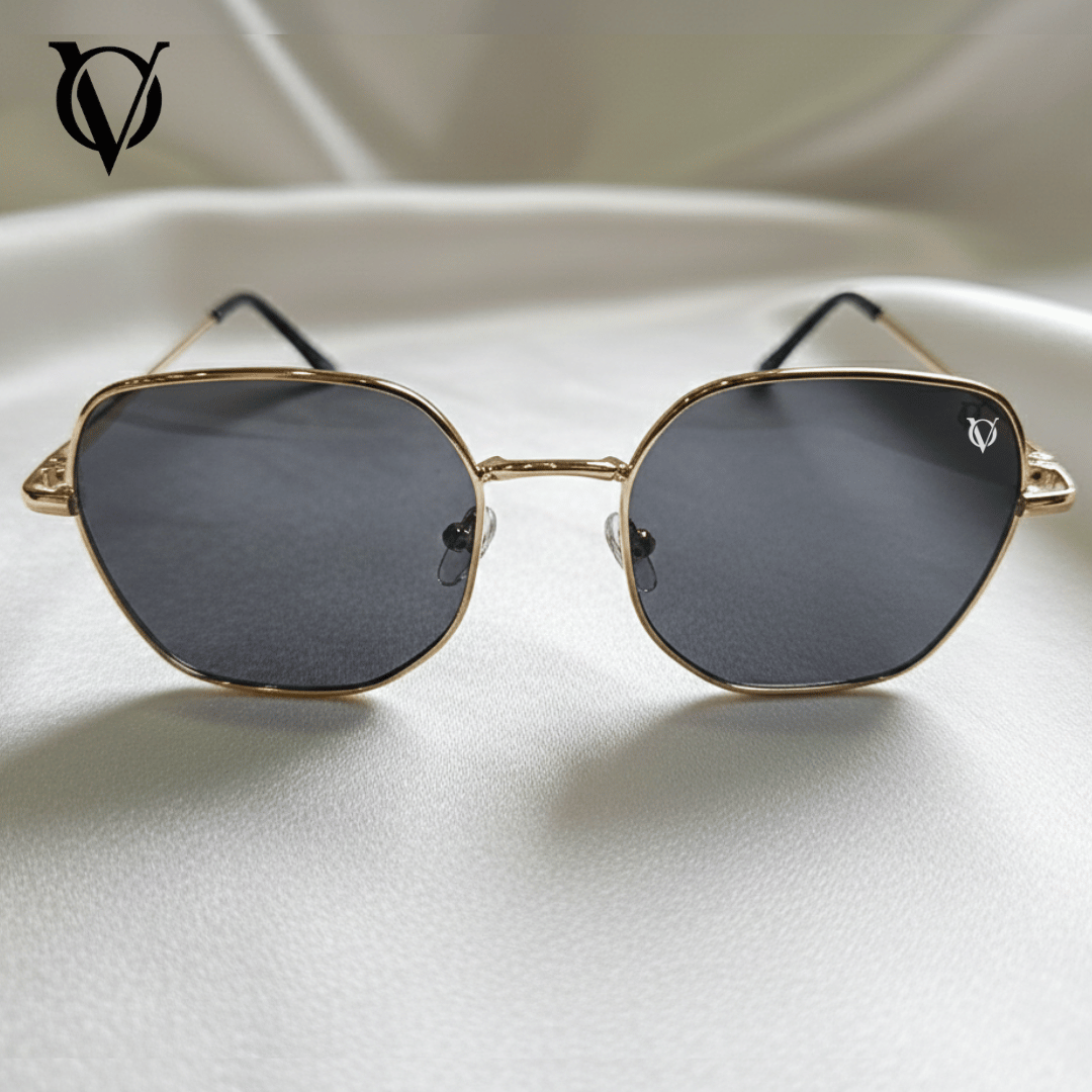 These sunglasses are crafted with a sleek geometric lens design framed in polished metal, delivering a refined and contemporary aesthetic. The subtle angular shape adds a modern edge while maintaining a balanced, elegant look.